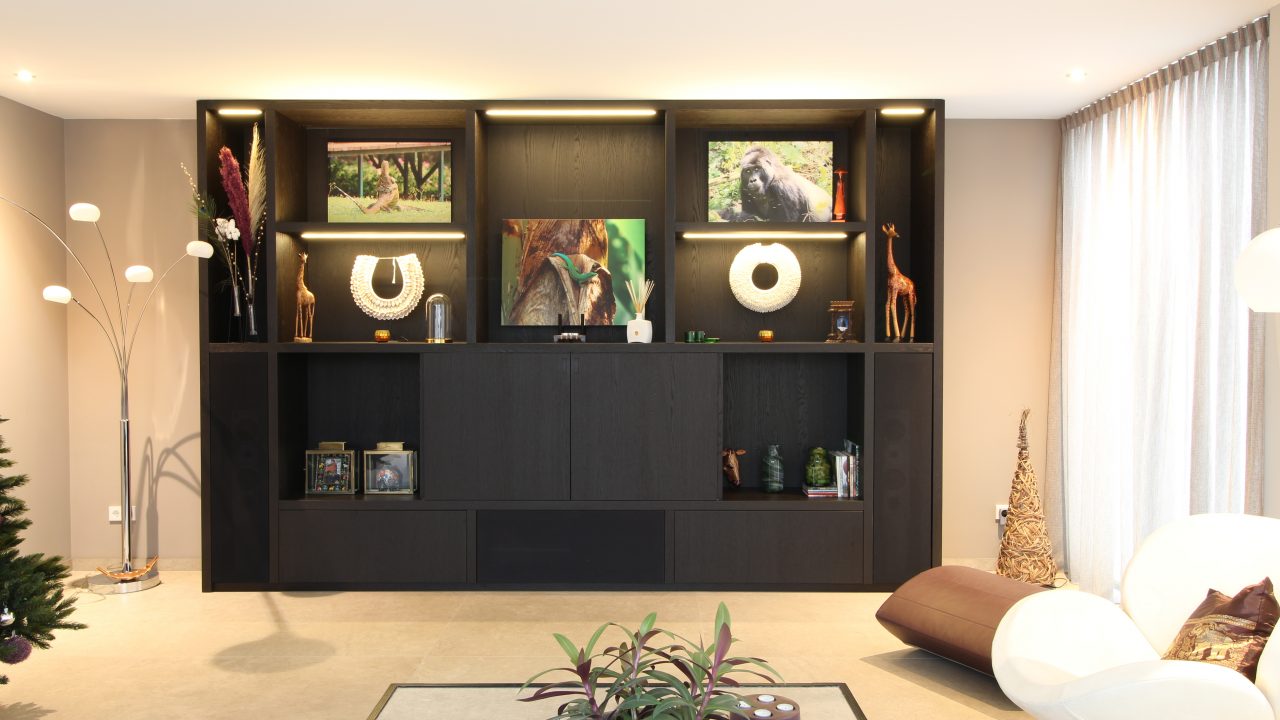 Dit idee wilden ze dan ook uitgewerkt hebben naar de kamer (televisiekast) en de eetruimte (boekenkast).